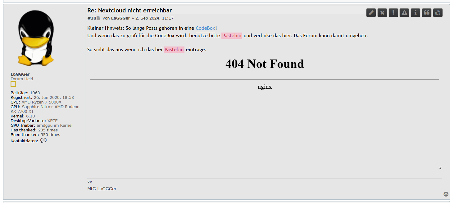 Und wenn ich mir im alten Forum einen Beitrag von z.B. dir anschaue mit einem Pastbin Link, dann kommt das: