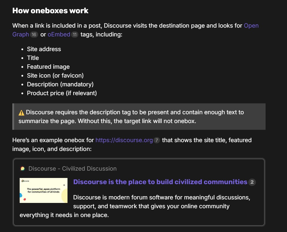 Für solche Sachen, wenn es in der sogenannten Onebox eine Vorschau geben soll, dann bitte den nutzen, ansonsten kommen immer nur leere Boxen in der Vorschau zurück.