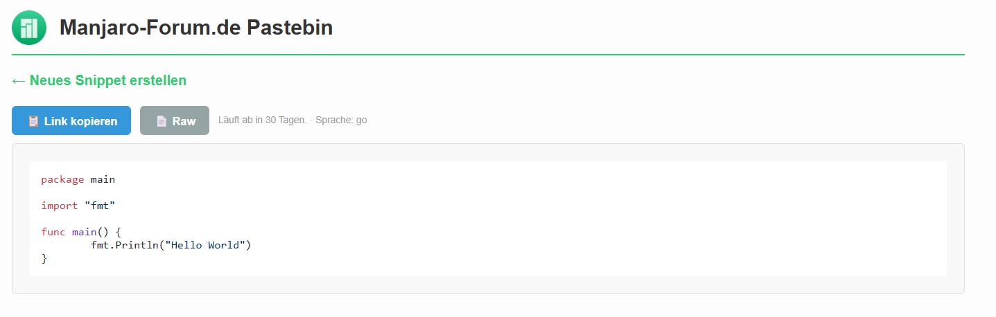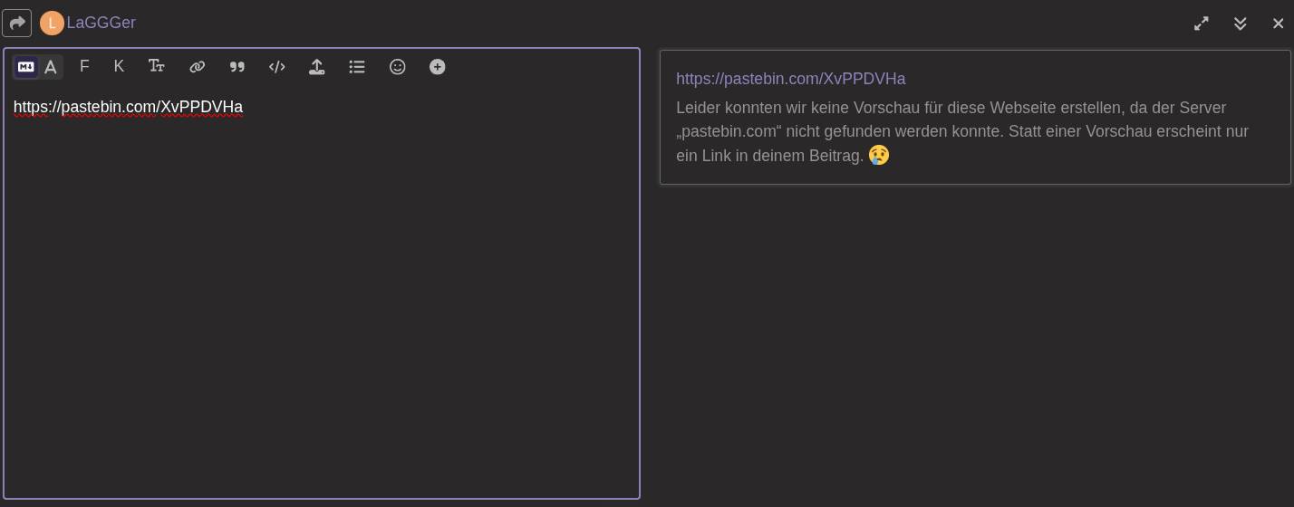 Habe einfach den Link eingegeben wie hier jetzt, dann war der komplette pastebin Text in einer Art Box mit scrollbalken zu sehen. Es gab ja Probleme mit dem alten Forum, vielleicht ist da was „verloren“ gegangen.