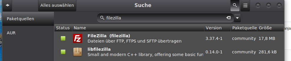 Herunterladen von filezilla (3.37.4-1-x86_64)...